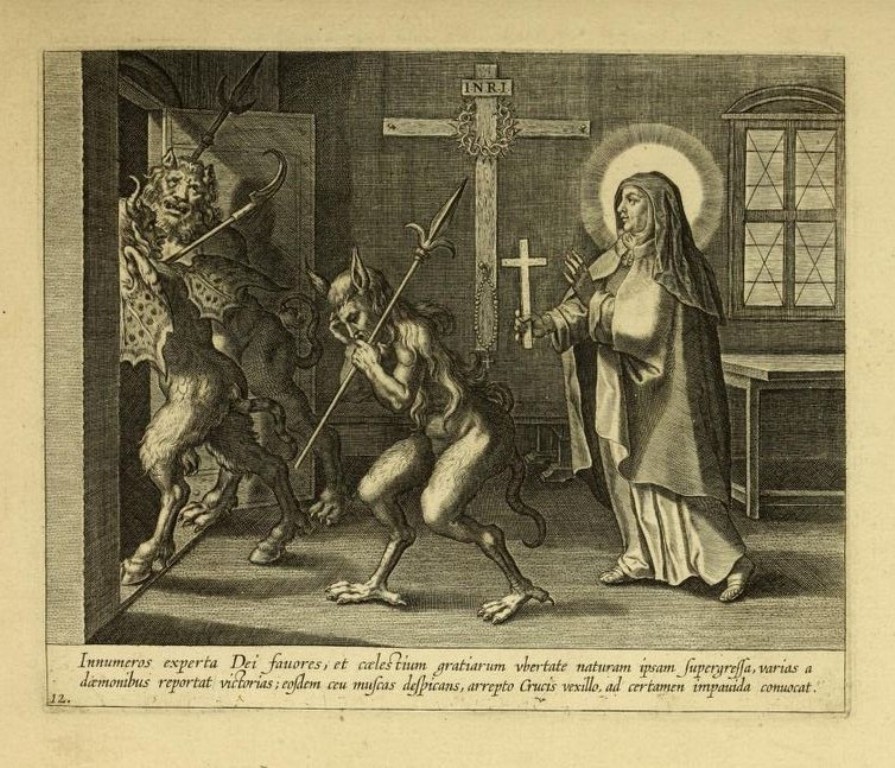 La iconografia de la Contrareforma conté sovint representacions del maligne assetjant i temptant els sants, com ho podem veure en els magnífics gravats que Adriaen Collaert i Cornelis Galle feren per a la “vida gràfica” de Teresa de Jesús Vita B. Virginis Teresiae a Iesu Ordinis Carmelitarum Excalceatorum Piae Restauratricis (Anvers, 1613).