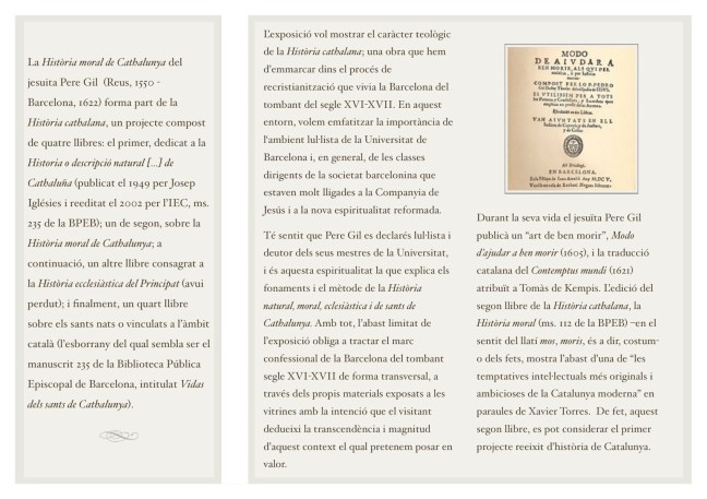 Exposició “La Història moral de Cathalunya del jesuïta Pere Gil (1550-1622). Una obra teològica en la Barcelona confessional del tombant del segle XVI-XVII”