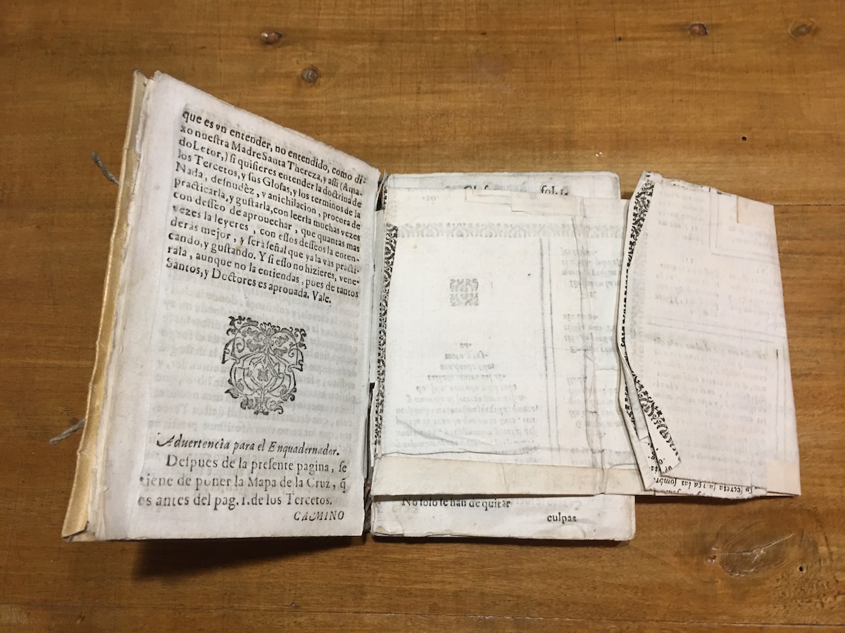 Aquest desconcertant avís era realment intrigant. Els volums de l’obra disponibles a l’Arxiu dels carmelites descalços de Catalunya i Balears o a la Biblioteca de la Universitat de Barcelona no aclarien de què tractava aquest esmentat “Mapa”, que no apareixia enlloc. Un tros de paper que sobresortia de l’enquadernació semblava indicar que allí hi havia hagut un full cosit amb el plec. L’extracció de gravats encartats en llibres, per a ser emprats com a estampes, penjats a la paret o emmarcats, venuts o regalats, ha estat dissortadament una pràctica inveterada. En el cas dels llibres espirituals o pietosos, s’hi afegia a més la consideració reverencial d’estampa religiosa.