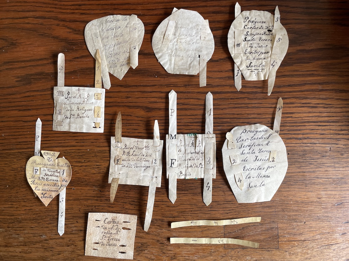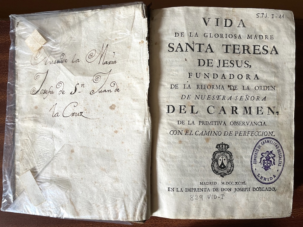 La biografia de la fundadora santa Teresa de Jesús, les diverses edicions de les seves obres, cartes o textos editats per altres autors, com els Avisos espirituales comentats per Alonso de Andrade, formen part del corpus bibliogràfic imprescindible d’una biblioteca carmelitana.